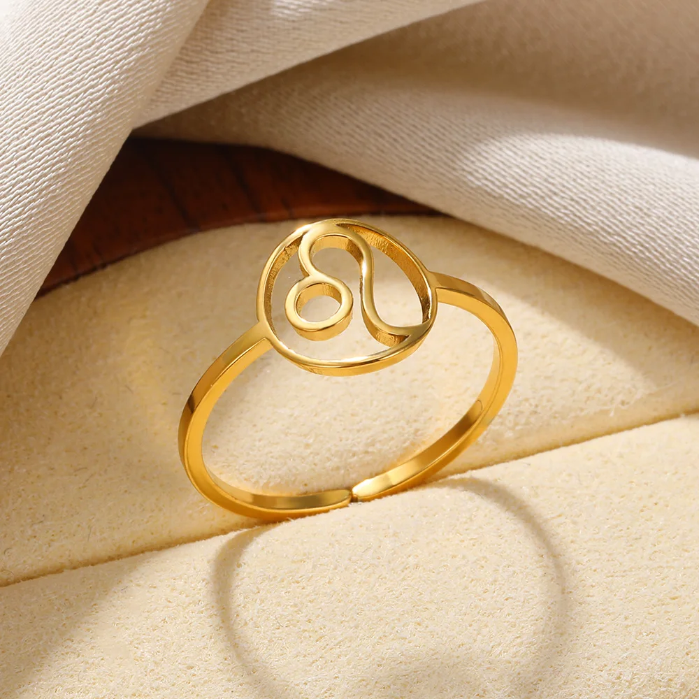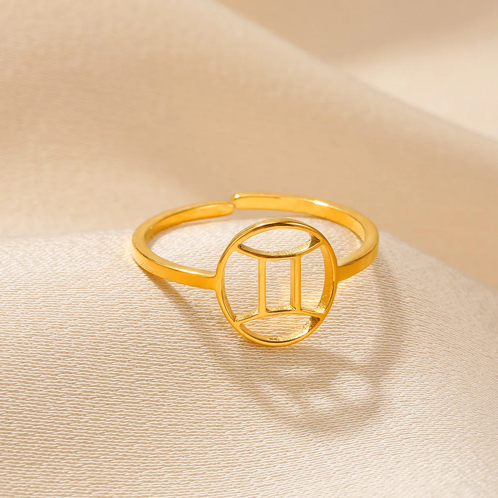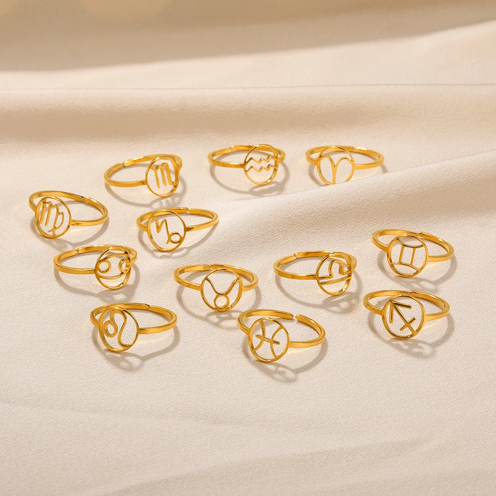 This gold constellation ring represents the unique energy of your zodiac sign. Made of stainless steel with a shiny finish, it's adjustable to fit your finger perfectly and accompany you every moment.