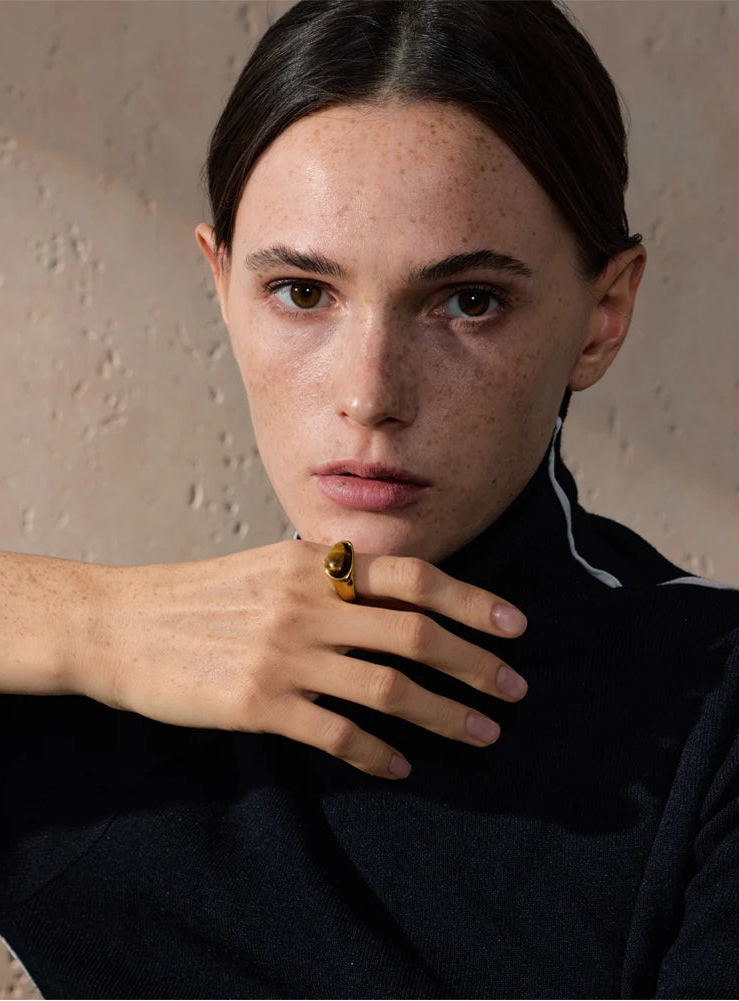 Shine with natural style. Adjustable stainless steel ring with Tiger Shell stone. Unique design, trendy vibes